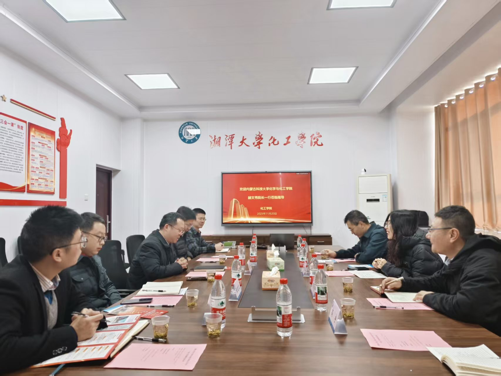 ,与该院院长吴旭、副院长刘雷、化工系主任申峻、化工实验中心副主任徐守冬、运行保障办公室主任温幸等座谈。双方聚焦煤化工学科发展、人才引进策略及实验室管理模式展开探讨,并实地参观了化工原理实验室、专业实验室及实训基地,深入了解实验教学创新与实训功能。