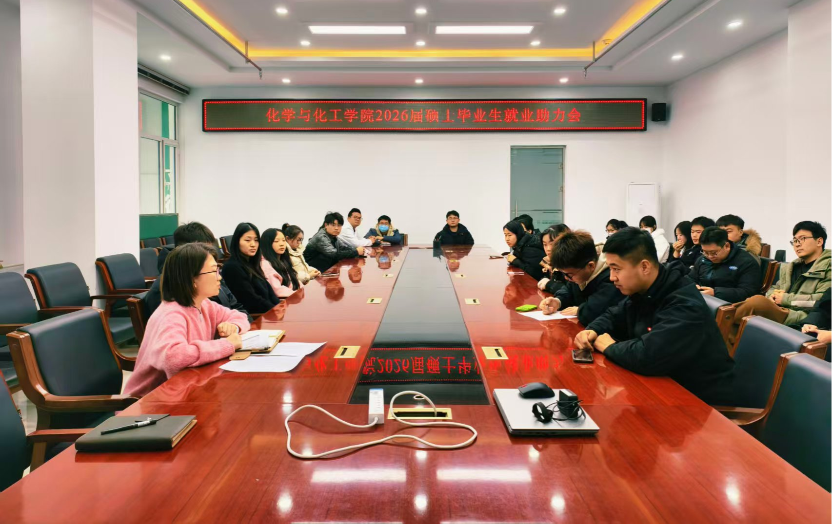 于1月14日上午在逸夫楼E202召开2026届硕士毕业生就业助力会。学院党委副书记副院长、就业辅导员与全体2026届硕士毕业生面对面交流,围绕就业环境分析、简历指导与求职经验分享等方面开展指导。