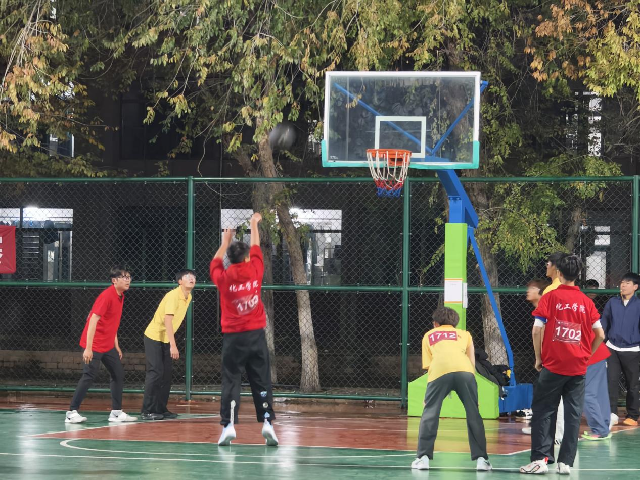新生篮球赛在篮球场正式拉开帷幕。来自化工25-5班、应化职25班、能化25-1班和能化25-4班的四支队伍集结亮相。同学们在场上奔跑拼搏,展现出朝气与活力,成为秋日校园一道动人的风景。
